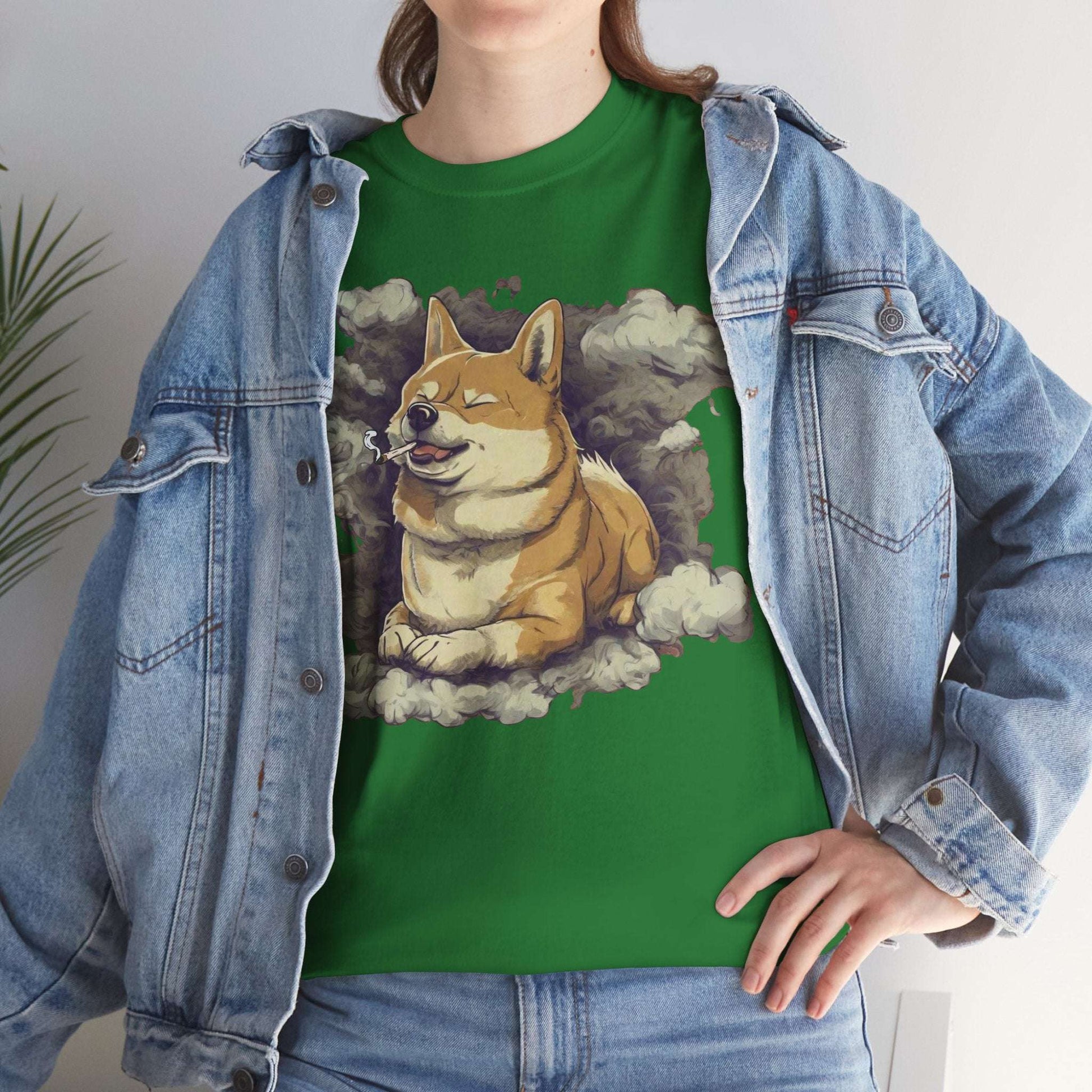 A 'high as doge' T-Shirt featuring a picture of a corgi smoking weed with a joint in his mouth, giving off a playful and humorous vibe. Perfect for dog lovers and those with a sense of humor, this tee is ideal for casual wear or as a conversation starter. Great for gifting during holidays or birthdays for friends who appreciate quirky designs.